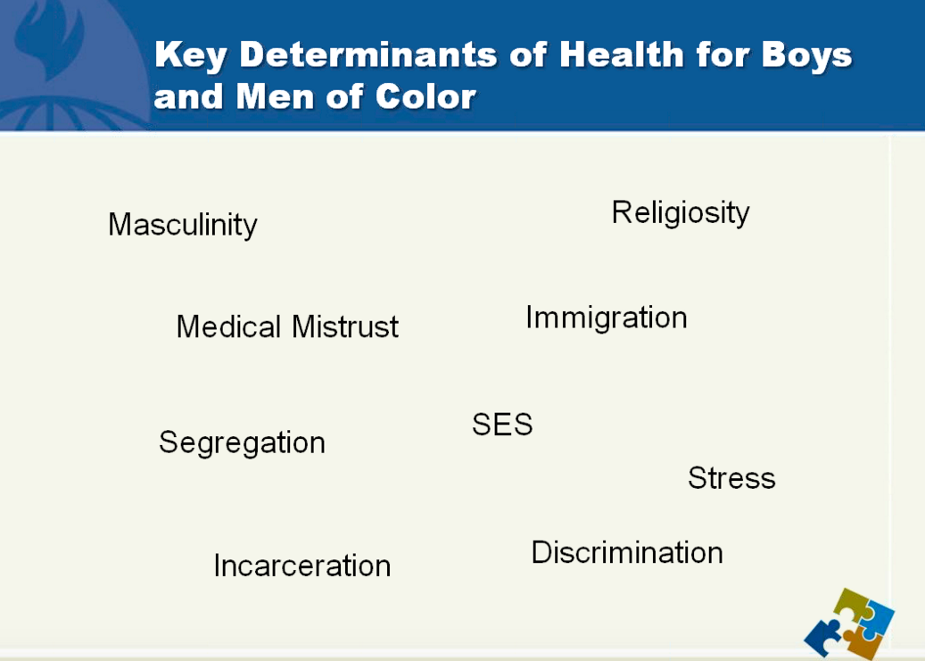 Key determinants of health for men and boys of color include masculinity, medical distrust, and discrimination — these factors are not often included in studies.